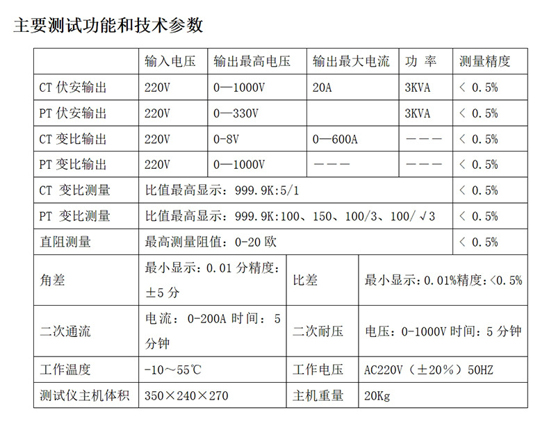 4、功能齐全:可检测CT/PT的伏安特性、变比、极性、5%和10%误差曲线、CT一次通流和CT退磁等项目,轻松实现一机多用。